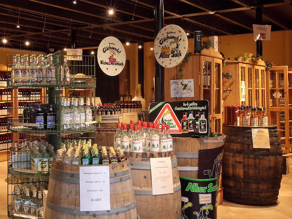 Alle diese Produkte können auch direkt im Werksverkauf günstig erworben werden. Hier ist zugleich der Ausgangspunkt für den Besuch des Schnapsmuseums, das seit 2006 einen unterhaltsamen und mit manchem lustigen Schwank gespickten Rundgang durch die Geschichte des Alkohols bietet. Viele Touristengruppen, die sich die Sehenswürdigkeiten Altenburgs wie Schloss, Skat- oder Lindenau-Museum anschauen, machen inzwischen auch von diesem besonderen Angebot Gebrauch. Erleben Sie realitätsnahe Geschichte auf dem Gebiet der Spirituosen - wahrlich keine trockene Angelegenheit. Anmeldungen sind erwünscht.
