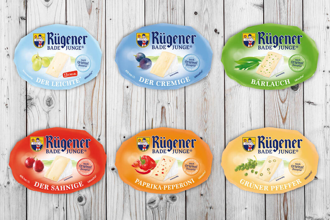 „Rügener Badejunge“ ist ein cremiger Weichkäse aus 100% natürlichen Zutaten. Genau das Richtige für alle, die es einfach und lecker mögen. Neben den Naturvarianten mit unterschiedlichen Fettgehalten –von leicht bis sahnig –gibt es die drei würzigen Zutaten-Varianten Bärlauch, grüner Pfeffer und Paprika-Peperoni. Alle Sorten überzeugen durch ein cremiges Genusserlebnis.