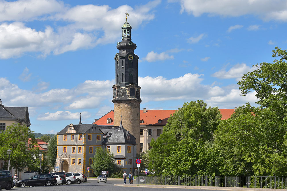 Mehr InformationenDas aus einer Burganlage des 10. Jahrhunderts hervorgegangene Stadtschloss präsentiert sich heute mit Bauteilen vom Mittelalter bis in das 20. Jahrhundert. Das Innere bewahrt einzigartige Raumensembles des Klassizismus, die auf den Wiederaufbau des niedergebrannten Schlosses um 1800 unter Herzog Carl August und die Ausbauten seiner Schwiegertochter Maria Pawlowna zurückgehen.