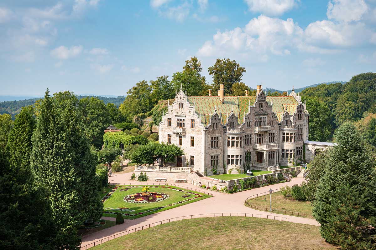 Mehr InformationenIn der Nähe von Bad Liebenstein liegt das Schloss Altenstein, eine Neorenaissance-Residenz der Herzöge von Sachsen-Meiningen. Der umgebende Landschaftspark wurde von Fürst Hermann von Pückler-Muskau gestaltet und beherbergt eine Gedenkstätte für den häufigen Besucher Johannes Brahms seit 2017.