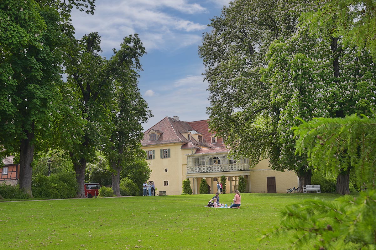 Mehr InformationenDas Ensemble aus Schloss, Park und Theater gewann seit dem 16. Jahrhundert als Rittergut der von Schönfeld und der von Stein seine heutige Gestalt. Goethe besuchte zwischen 1776 und 1788 in diesem idyllischen Wasserschloss Charlotten von Stein. Aus Stein`schen Besitz stammende Möbel, Gemälde und Zeichnungen erzählen von dieser berühmten Liebe. Audioguide und Hörstation "Hier sitz ich auf deinem Canapee" machen sie erlebbar. Der romantische Landschaftspark lockt mit "Blumentheater", Grotte, Badehäuschen und künstlicher Ruine. Im klassizistischen Liebhabertheater, das zur Europastraße Historische Theater gehört, werden von Mai bis Oktober Opern und Theaterstücke in historischer Aufführungspraxis gespielt, Kammerkonzerte und Lesungen veranstaltet.