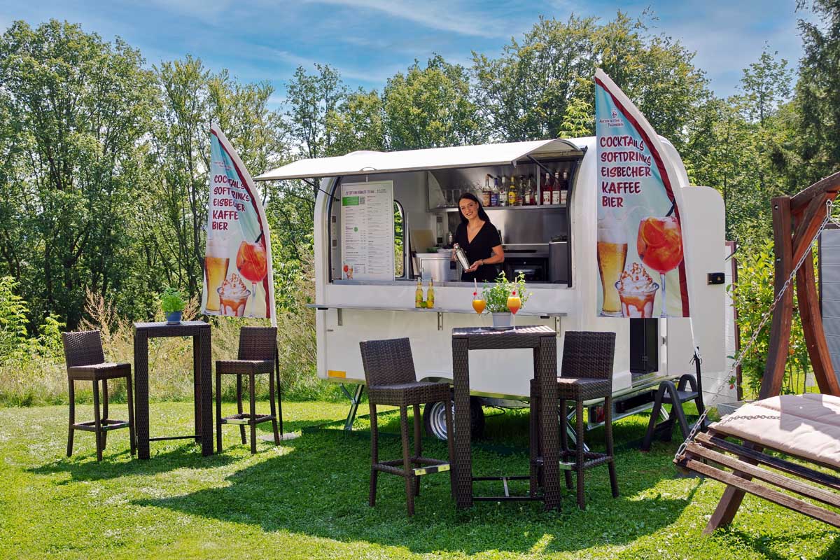 Um unseren Getränkeservice im Wellnessbereich zu erweitern, wird von April bis Oktober unser neuer Getränkewagen am Außenpool zwischen 14:30 – 17:00 Uhr für die Gäste geöffnet sein (witterungsabhängig). In den kühleren Monaten können Getränke weiterhin über das Telefon im Wellnessbereich geordert werden.