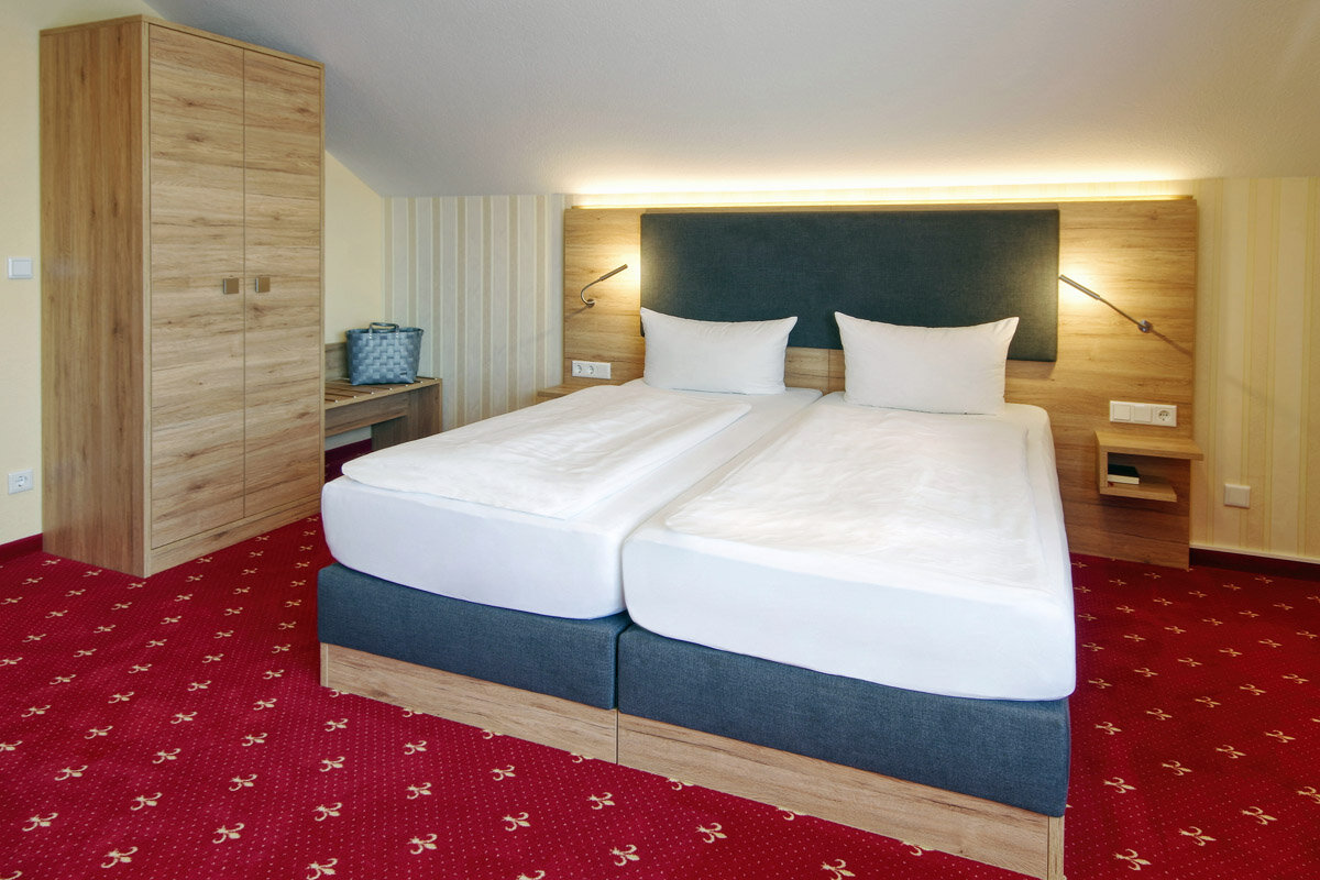 Für Ihre individuellen Wünsche bieten wir Ihnen 48 stilvoll eingerichtete Gästezimmer in verschiedenen Kategorien. Alle Zimmer sind mit einem modernen Bad, 32"-Flachbild-TV, Minibar, Telefon, Föhn, Kosmetikspiegel u.v.m. ausgestattet.