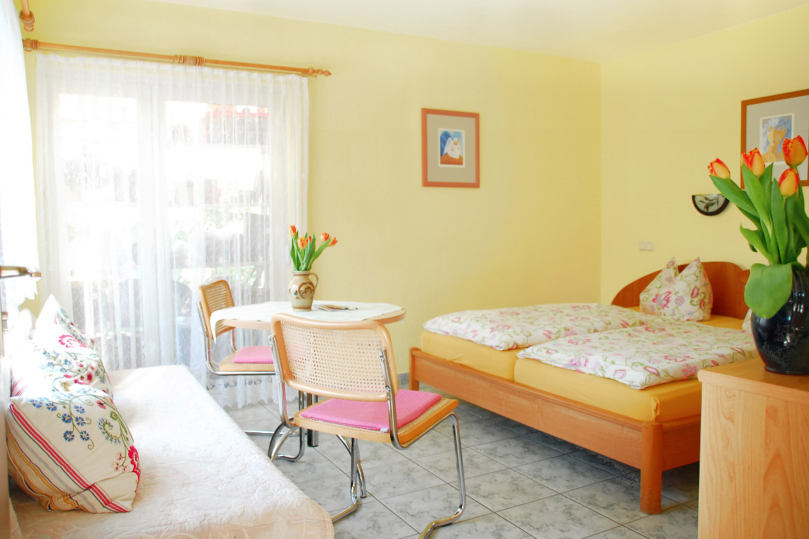 Die vier Appartements können auch als Ferienwohnung gebucht werden. Diese sind mit einer Miniküche eingerichtet. Die Zimmer unserer Pension strahlen einen charmant-gemütlichen, aber doch modernen Charakter aus. Zu unserem Service gehören kostenfreies WLAN und das Bereitstellen von Haarföhn, Bügeleisen, Wasserkocher, Toaster, Radio und Geschirr. Alkoholfreie Getränke sind bei uns ebenfalls erhältlich.