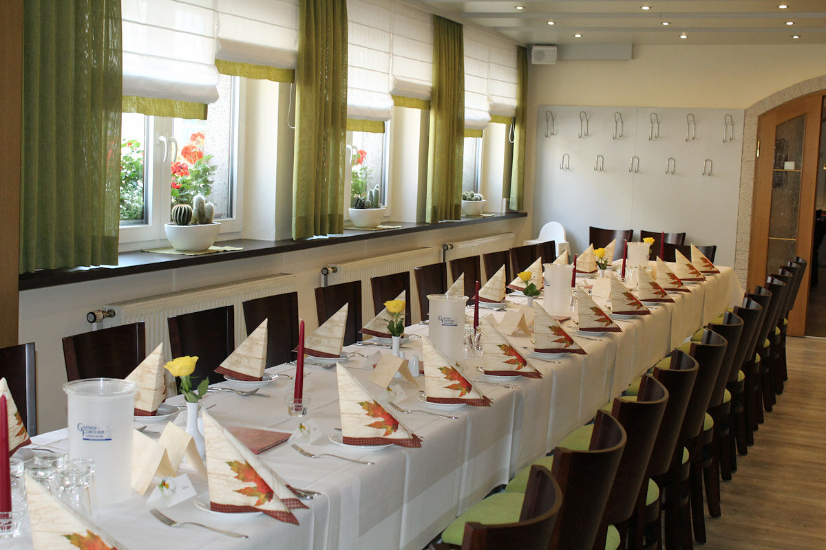 Ihre Jubiläums-, Vereins-, Familien-, Firmenfeiern, ob im kleinen oder großen Rahmen (bis 100 Personen), werden von unserem Haus ausgerichtet. Wir liefern auch Menüs oder Buffets, ob warm oder kalt für Ihre Festlichkeiten frei Haus.