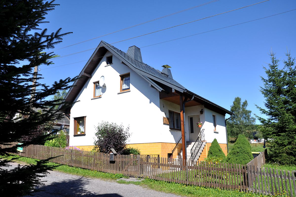 Wir bieten Ihnen ein alleinstehendes Ferienhaus mit Garage für 2 - 3 Personen und eine Ferienwohnung für 3 - 4 Personen bei uns im Haus, auf separater Etage am Ortsrand von Schmiedefeld, am Rennsteig in absolut ruhiger Lage. Von hier aus haben Sie im Sommer wie auch im Winter viele Möglichkeiten für Wanderungen und Spaziergänge (5 Minuten bis zum Wald). Zum Ortskern, mit vielen Einkaufsmöglichkeiten, haben Sie nur 5 Minuten Fußweg.