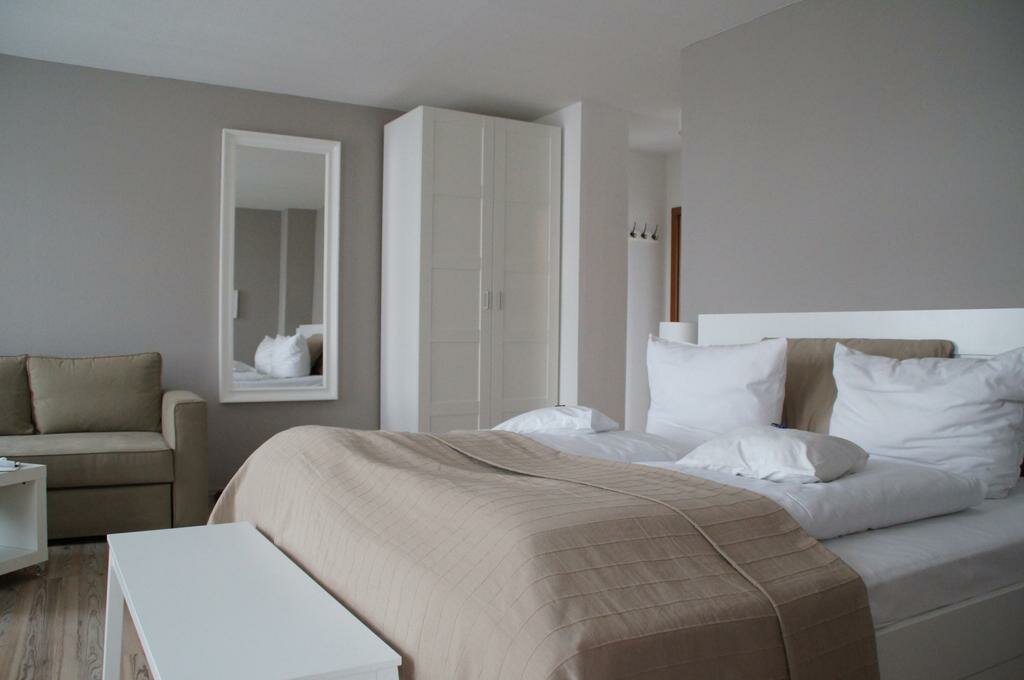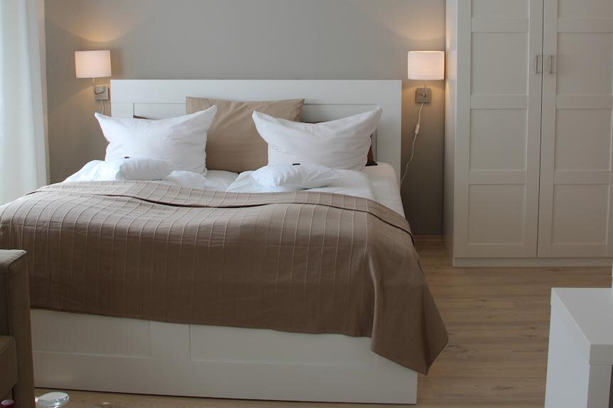 Alle Apartments sind frisch renovierte Apartments der neusten Generation. Ausgestattet mit modenen Schlafsofa, einem Arbeitsbereich, einem großen Doppelbett, einem großen Kleiderschrank und mit einem Fussboden aus Laminat.