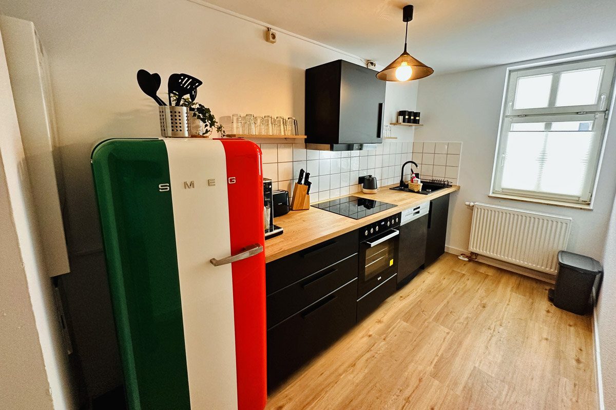 Im Erdgeschoss erwartet Sie auf ca. 45 qm eine stilvolle 2-Zimmer-Ferienwohnung für bis zu 4 Personen (max. 3 Erwachsene und 1 Kind).