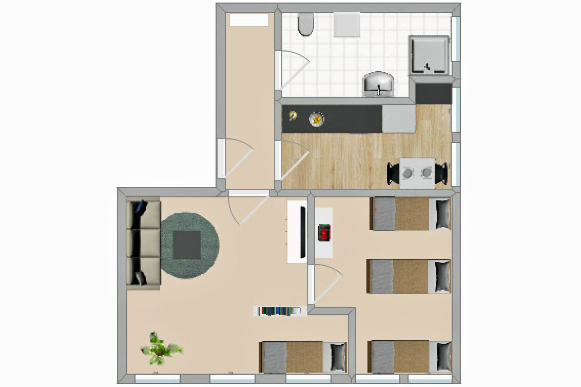 Im 1. OG erwartet Sie auf ca. 55 qm eine stilvolle 2-Zimmer-Ferienwohnung für bis zu 4 Personen.