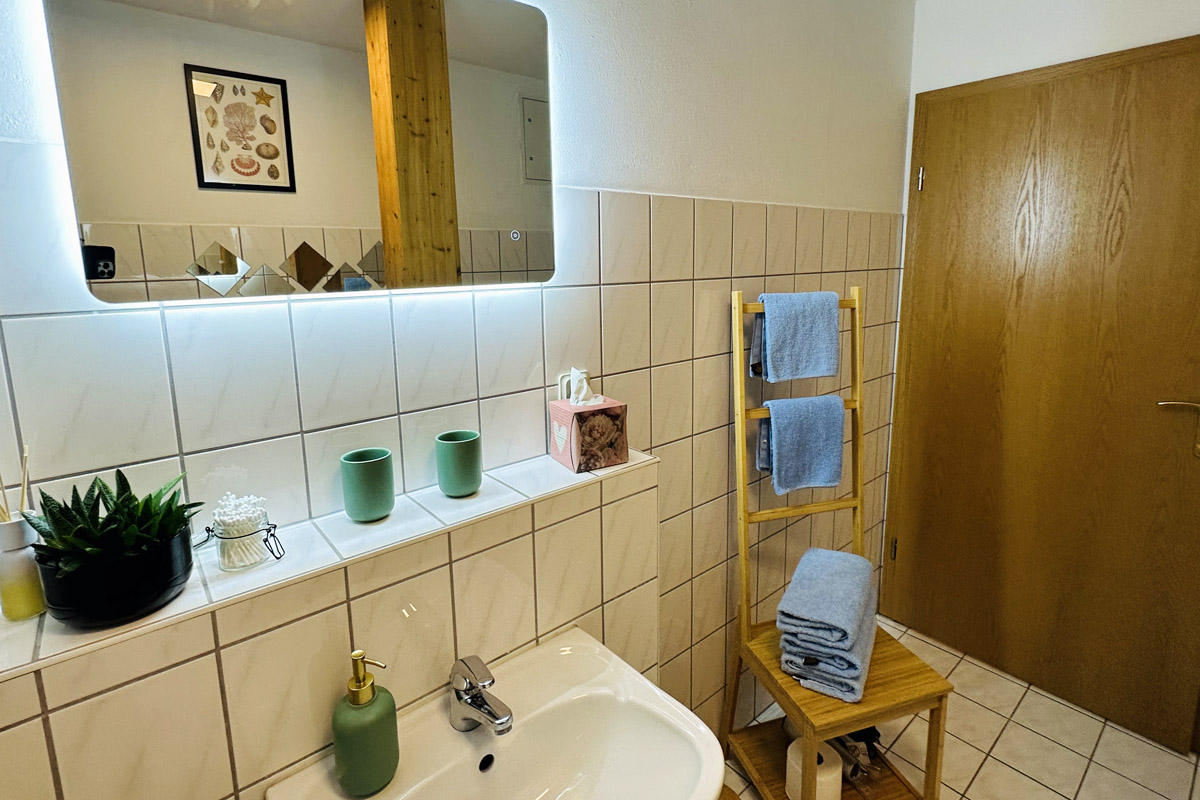 Die Wohnung ist mit allem ausgestattet, was Sie für einen erholsamen Aufenthalt im südlichen Thüringer Wald benötigen.