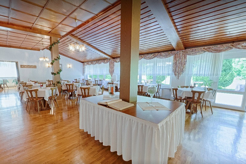 Die Bergstube verfügt über eine Gaststätte mit 30 Sitzplätzen, einem Saal mit 100 Sitzplätzen und ein Kaminzimmer bzw. Tagungsraum mit 40 Plätzen. Genießen Sie unsere Küche mit Spezialitäten aus Wald, Fluss und Flur.