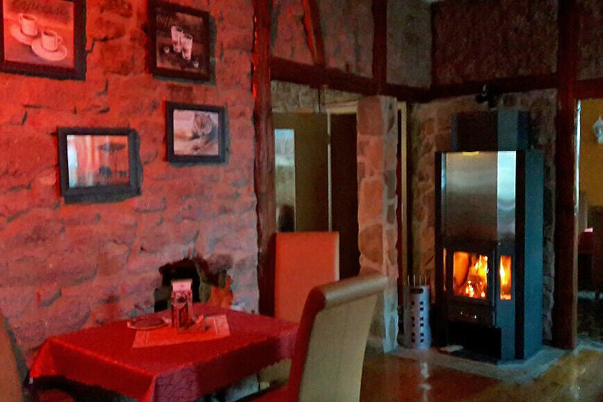 Unser Cafe unterteilt sich in einen liebevoll gestalteten Innenbereich mit Kaminofen und einem rustikalen Aussenbereich mit Grillstation.