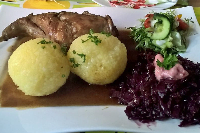 Warme Speisen wie verschiedene Braten mit Thüringer Klößen und auch Grillgerichte bieten wir Liebhabern der deftigen Küche. An unserem Aussengrill gibt es frische Thüringer Bratwurst und Rostbrätchen sowie eine Auswahl an Getränken.