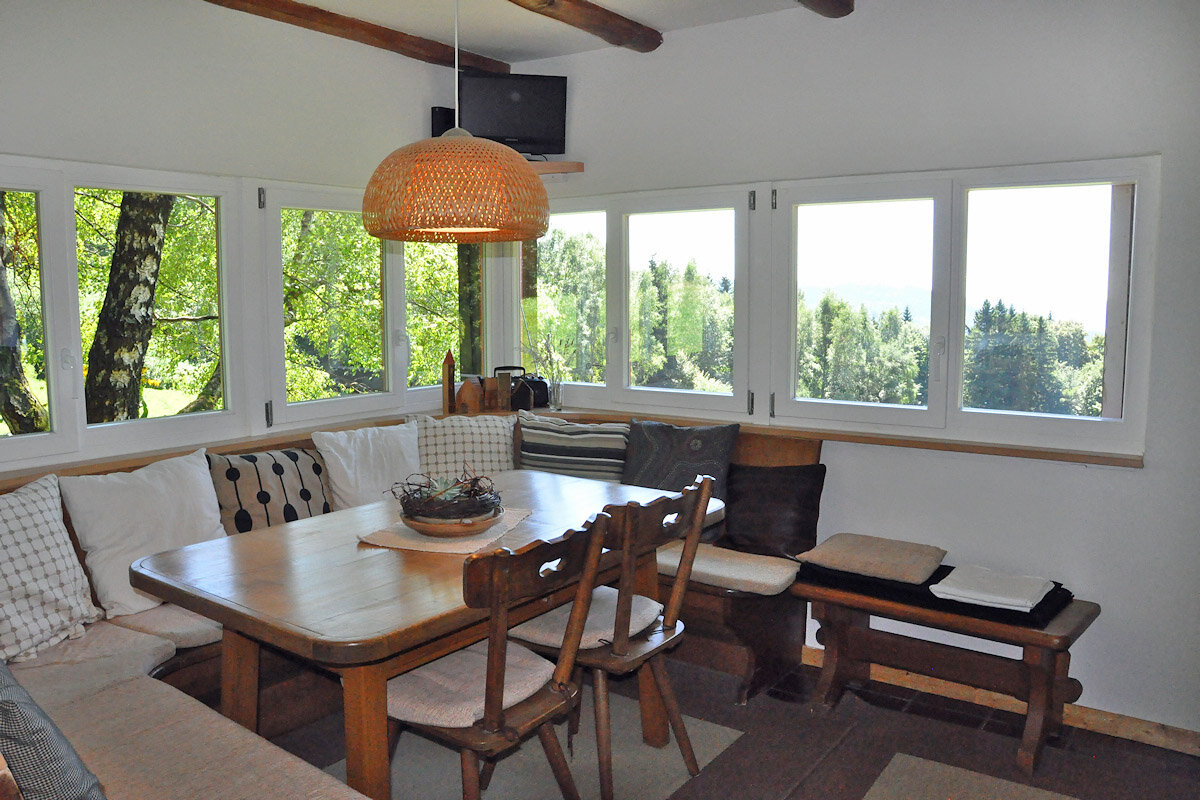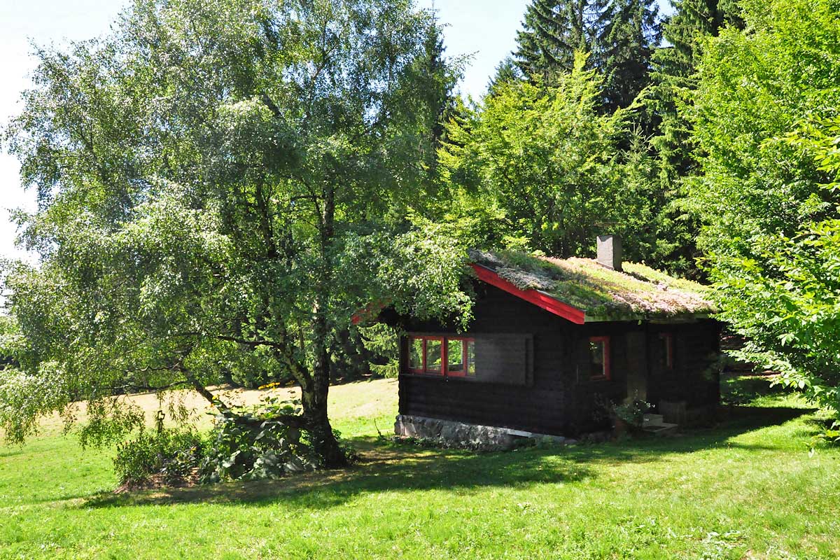 Die rustikale Blockhütte befindet sich mitten im Thüringer Wald auf 720 m Höhe an einem schönen Südhang mit hervorragender Fernsicht.