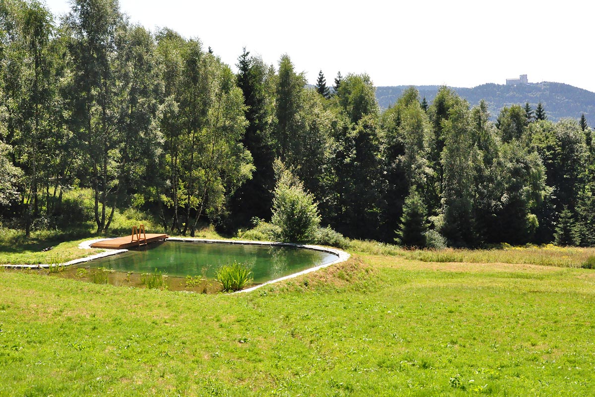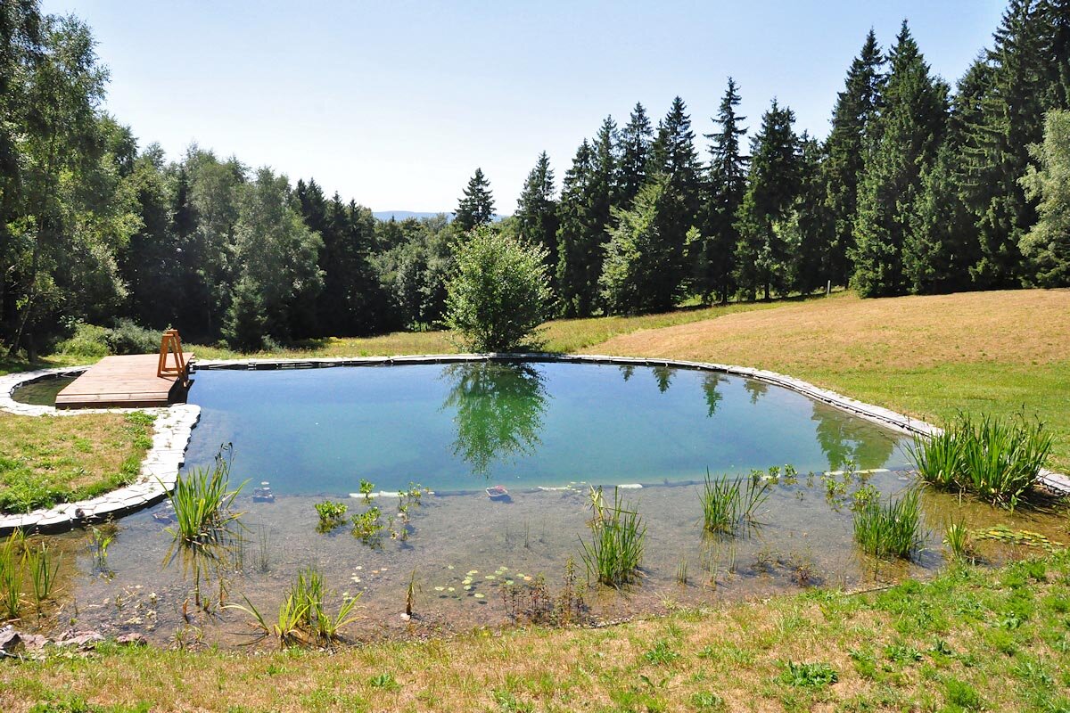 Das große Grundstück ist ideal für Ruhe suchende geeignet. Im Teich besteht die Möglichkeit zum Baden.