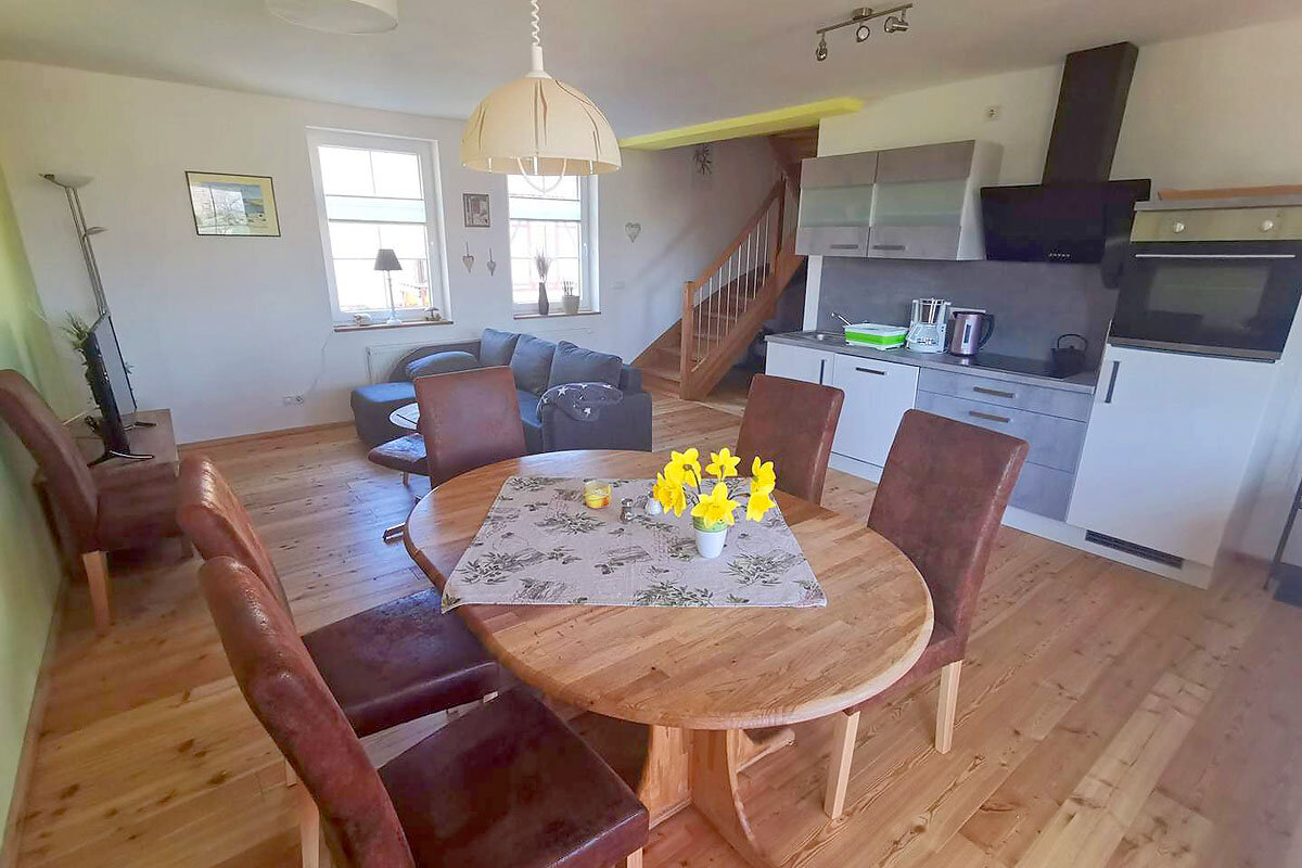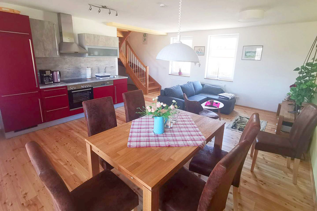 Unsere zwei Ferienwohnungen sind Teil eines ehemaligen regionaltypischen Vierseithofes im Thüringer Vogtland am Zeulenrodaer Meer.