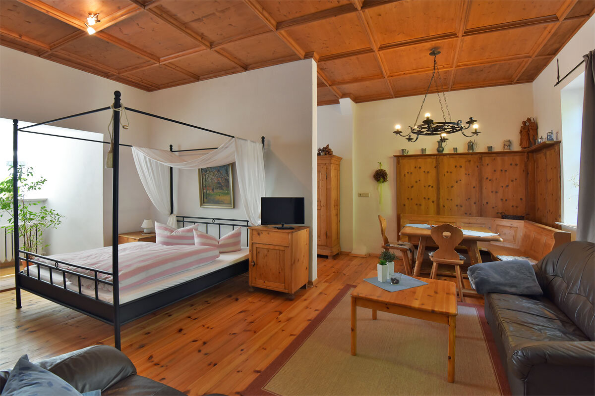 Die Ferienwohnungen, Einzelzimmer und Doppelzimmer überraschen mit individuellem Flair: gemütlichem Kachelofen, altem Fachwerk, dicken Mauern und ländlich-rustikaler, antiker Möblierung. Außerdem verfügen unsere Gästezimmer über Sat-TV, Dusche/WC sowie WLAN.