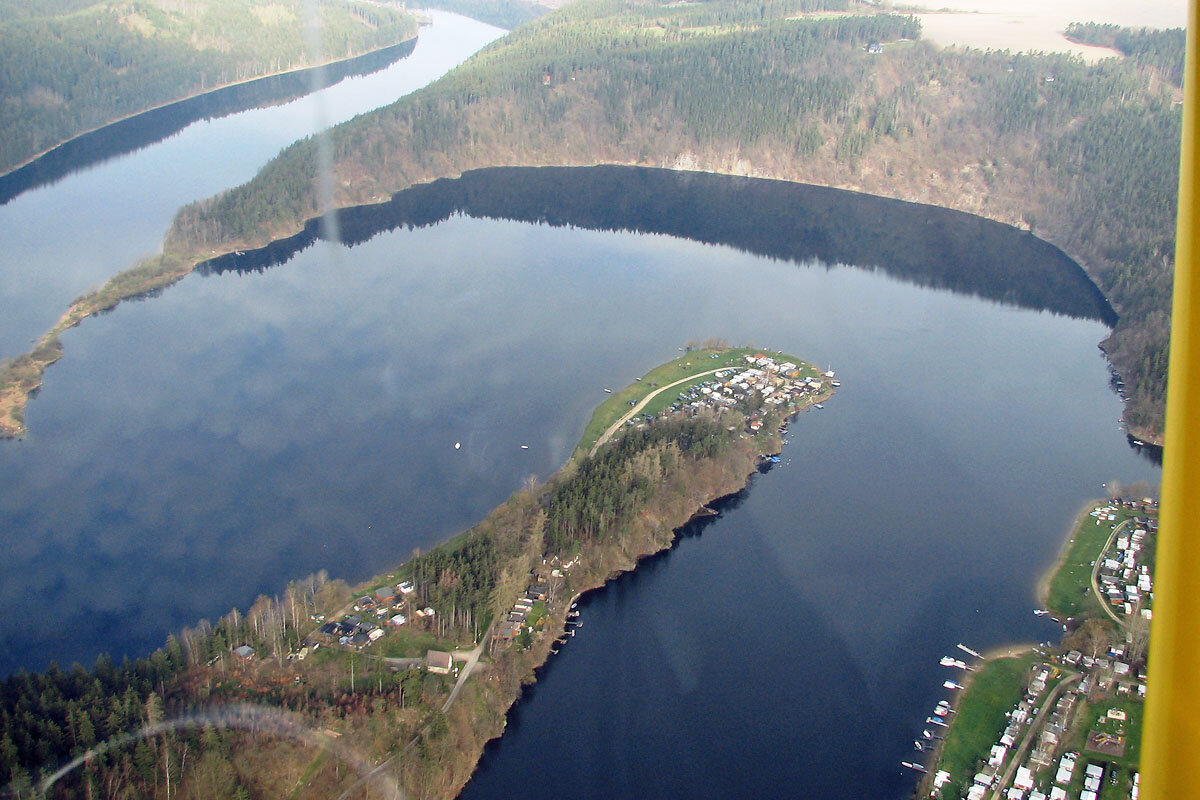 An einem der größten Stauseen Deutschlands, inmitten des grünen Thüringens, liegt unser Naturcampingplatz auf einer malerischen Halbinsel, die weit in eine große Seebucht des Hohenwartestausees hineinragt.