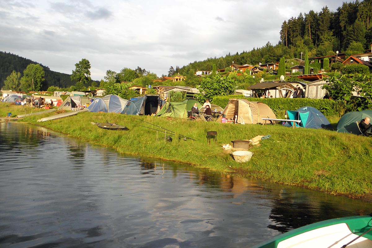 Der Campingplatz "Hopfenmühle" liegt etwa in der Mitte der 28 km langen Hohenwartetalsperre und erstreckt sich ca. 400 m direkt am Strand des Stausees entlang. Auf der Südseite wird er von einer privaten Bungalowsiedlung und einem hoch gewachsenen Waldgebiet begrenzt.