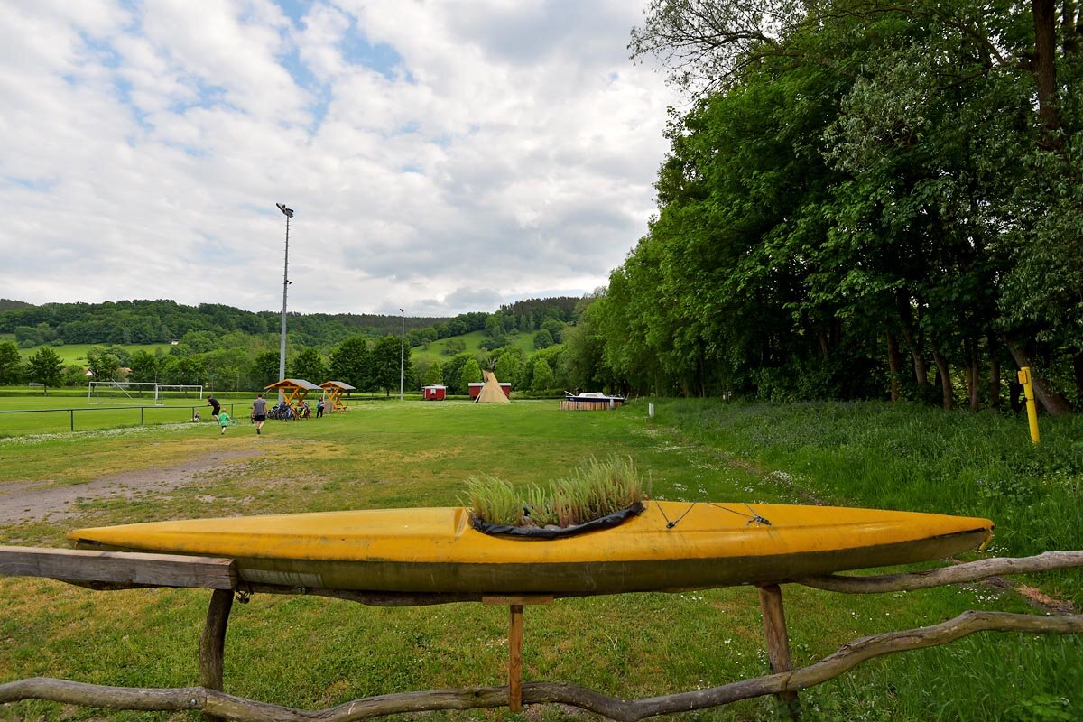 Unser Platz verfügt über eine großzügige Feuerstelle, ein Tipi für bis zu 20 Personen, eine Zeltwiese und Stellplätze für Wohnmobile mit Stromanschlüssen und Sanitärbereich. Wer ohne Zelt unterwegs ist kann Zuflucht in unserer "Bounty" suchen, einem umgebauten Segelboot.
