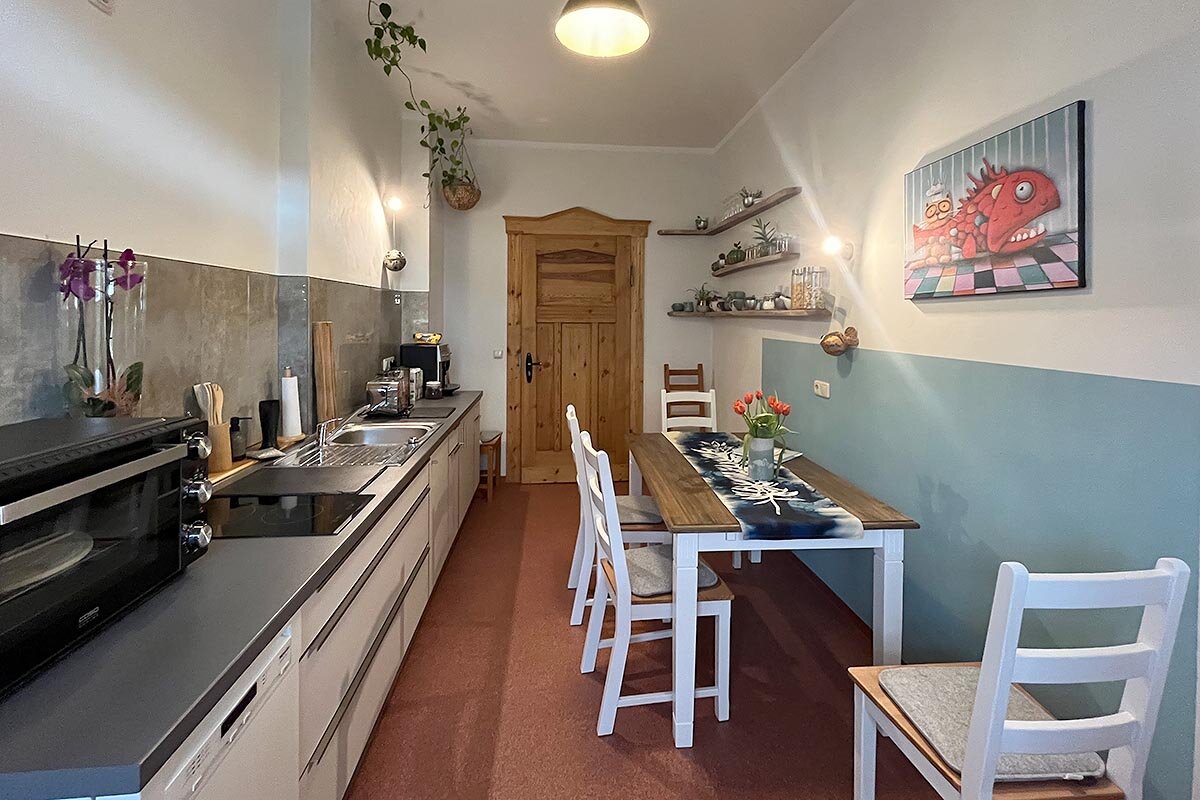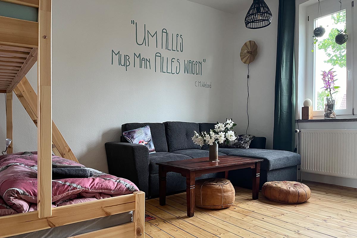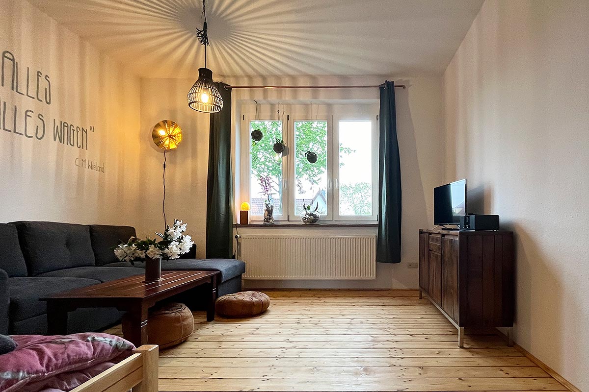 Unser Haus, erbaut in den 1910er Jahren, befindet sich unweit der historischen Altstadt von Saalfeld. Bei der Restaurierung der Wohnung wurde der originale Charakter und die Substanz des Hauses erhalten. Sie bietet genug Platz für Ihre Auszeit.