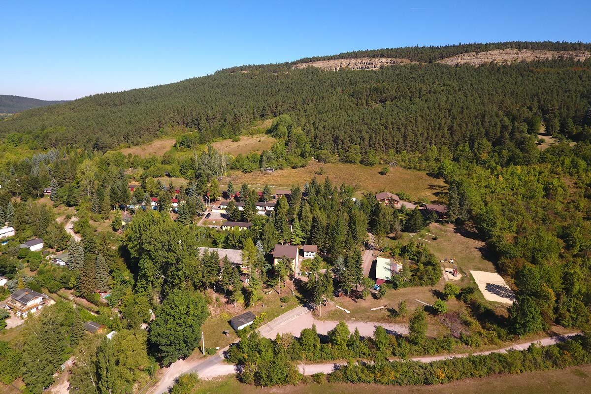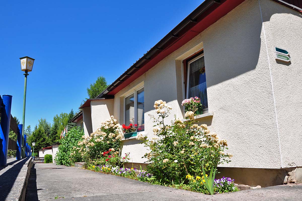 Unsere Ferienanlage liegt oberhalb des Luftkurortes Plaue zwischen 430 und 450 Meter Höhe an einem sonnigen, bewaldeten Südhang, an dem früher Wein angebaut wurde. Es besteht aus freistehenden, einstöckigen Häusern und bedeckt eine Gesamtfläche von 33.000 qm.