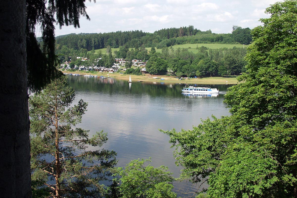 Unser Ferienhaus finden Sie in idyllisch ruhiger Hanglage Saalburgs. Von der Terrasse aus haben Sie einen herrlichen Blick über den Bleilochstaussee. Der hauseigene Bootssteg mit Ruderboot kann genutzt werden.