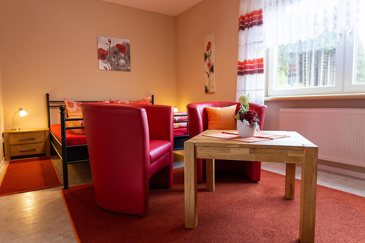 Das gemütliche Ferienhaus für bis zu 18 Personen wurde geschmackvoll eingerichtet und bietet einen wunderbaren Ausblick über den Thüringer Wald. Genießen Sie die Atmosphäre der romantischen und ruhigen Lage in Heubach.