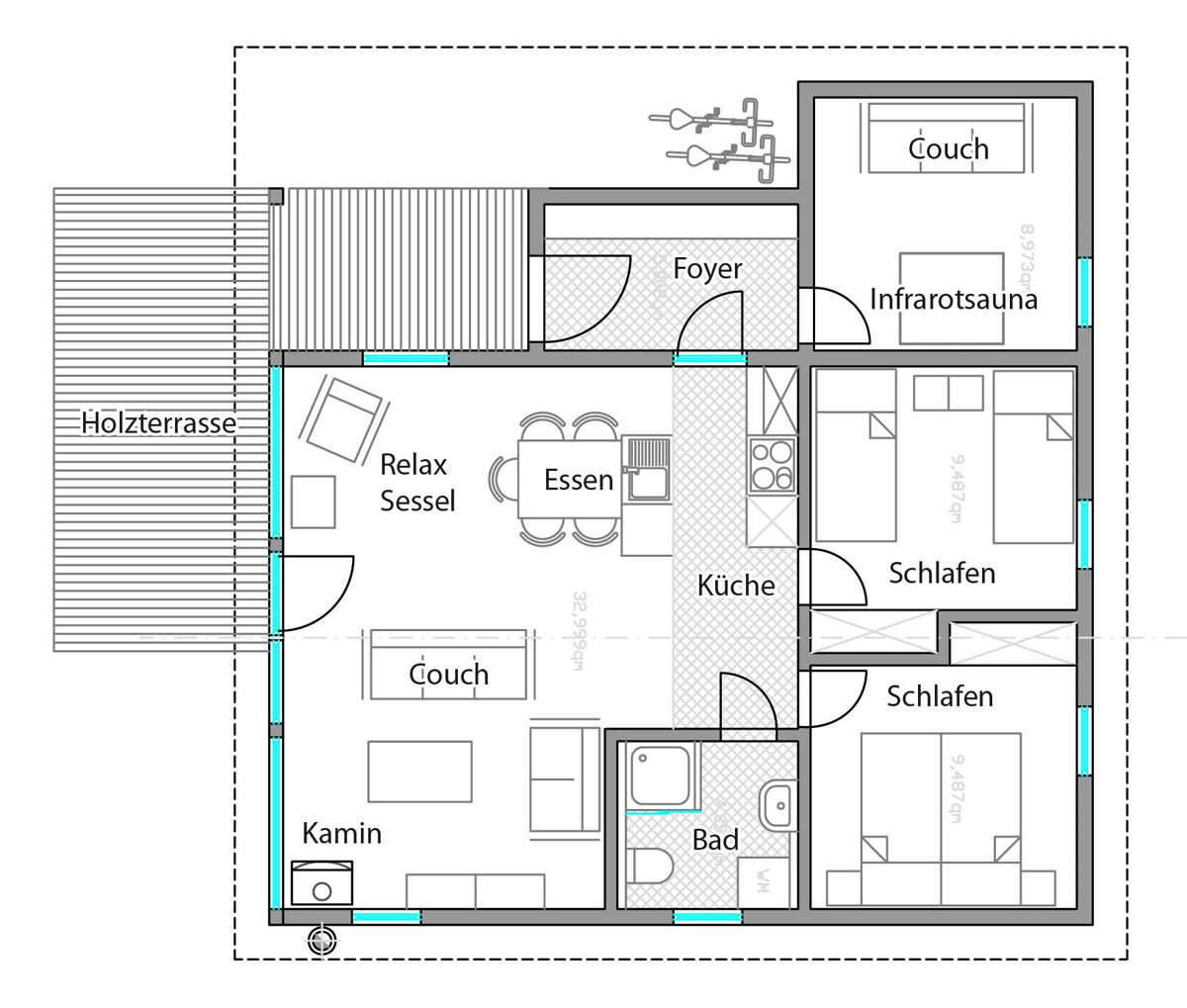 für 2 Personen + Sauna: ab 199,- EUR pro Nacht / ab 1.450,- EUR pro Woche