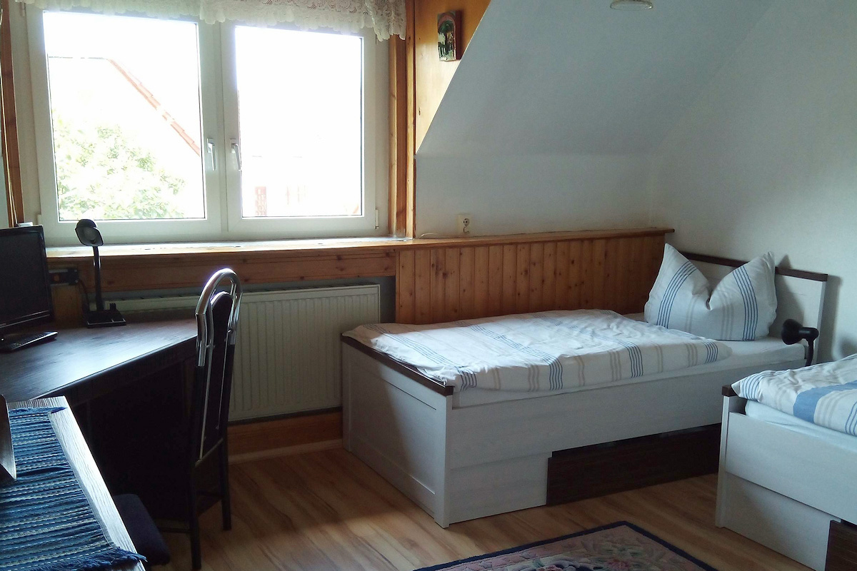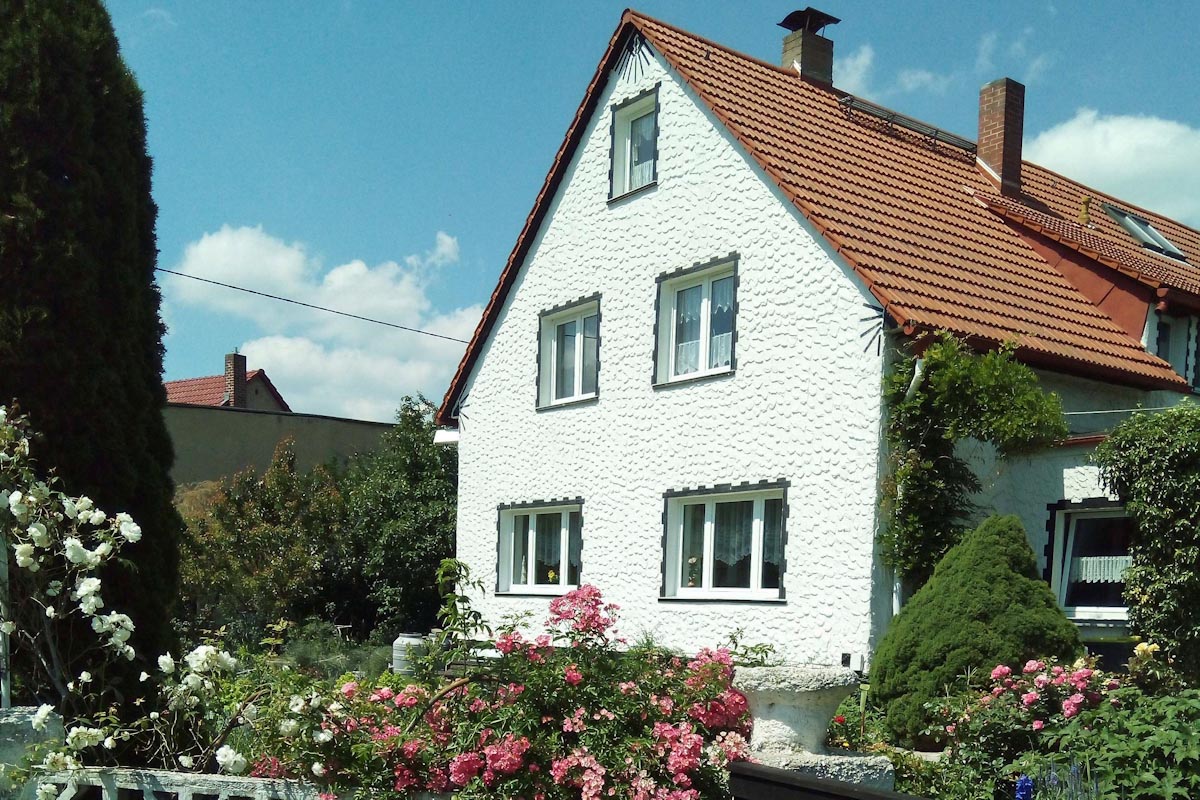 ... das bietet unser ruhig gelegenes Ferienhaus unweit von Gera, ca. 3 km nördlich der A4. Das im gemütlichen Landhausstil eingerichtete Ferienhaus hat mit 4 Schlafzimmern reichlich Platz und ist somit auch geeignet für Dienstleister, Gruppen sowie befreundete Familien.