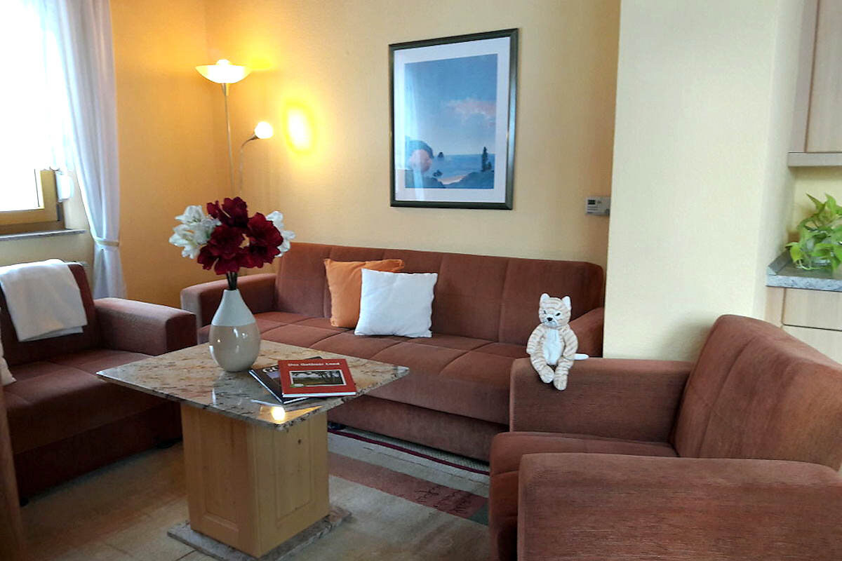 In unserem Nichtraucher-Ferienhaus soll es Ihnen an nichts fehlen. Genießen Sie den Blick vom Essplatz des Wohnzimmers in den Garten, relaxen Sie in der bequemen Sitzecke. Auch für einen längeren Aufenthalt ist unser Ferienhaus gut geeignet.