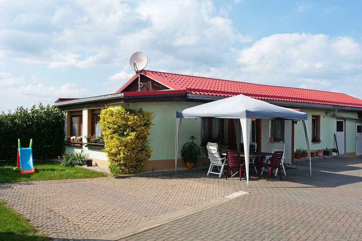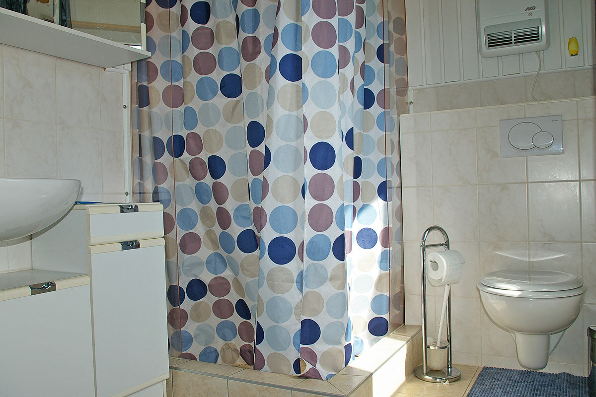 Ihre Ferienwohnung liegt ebenerdig im hinteren Teil unseres Grundstückes. Auf 60 qm befinden sich neben einem schön geschnittenen Wohnzimmer mit gemütlicher Sitzecke und TV,
