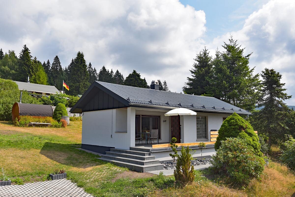 In idyllisch ruhiger Lage, nur wenige Gehminuten vom Waldrand entfernt, befinden sich in Goldlauter-Heidersbach am Geiersberg die Ferienhäuser der Familie Förster.