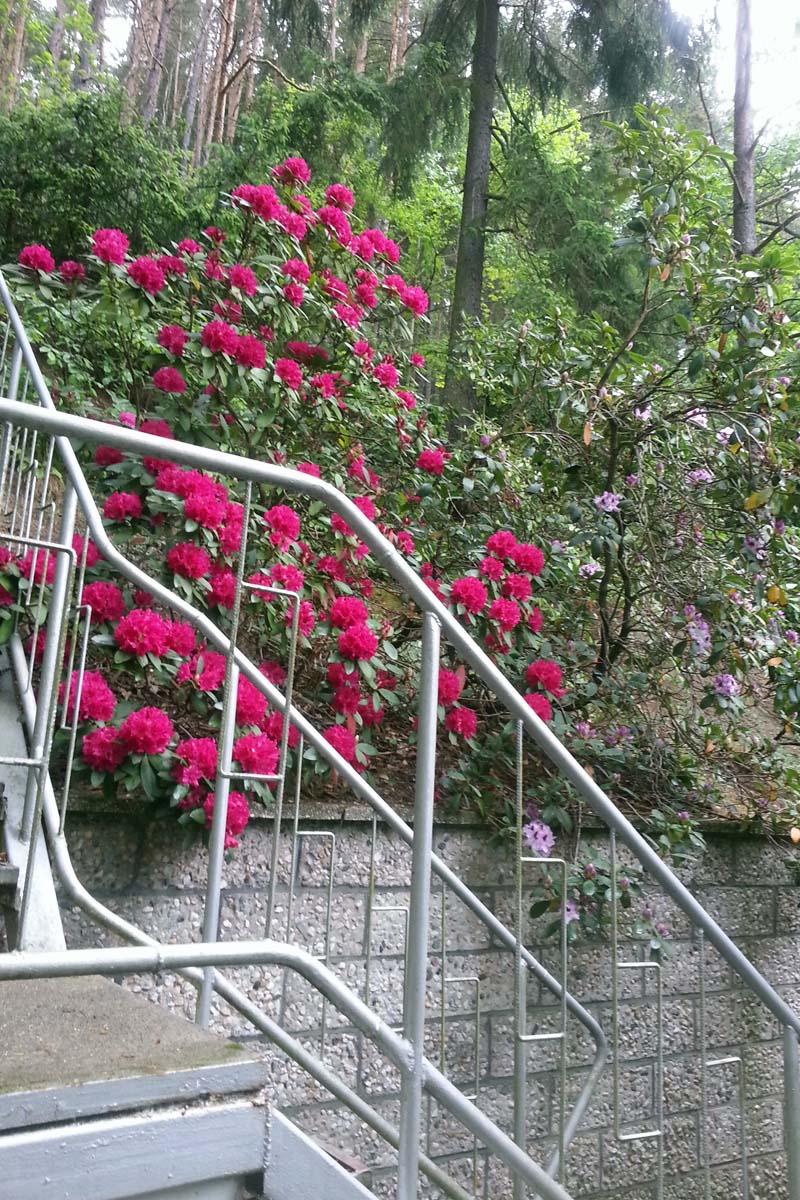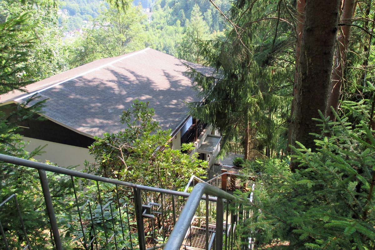 Aufgrund der Hanglage ist das Ferienhaus über eine relativ steile Eisentreppe erreichbar.