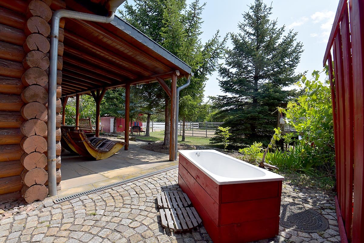 Herzlich willkommen auf der "Buckarooranch" in Gierstädt, unweit der Städte Erfurt, Gotha und Bad Langensalza. Das urige Blockhaus befindet sich auf einem ca. 5000 m² großem Grundstück wo auch Pferde, Schweine, Hühner, Rinder, Hunde, Katzen, Enten, Hasen und Ziegen ihr zu Hause haben.
