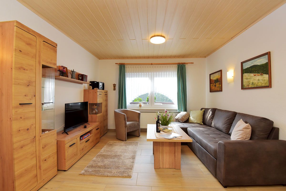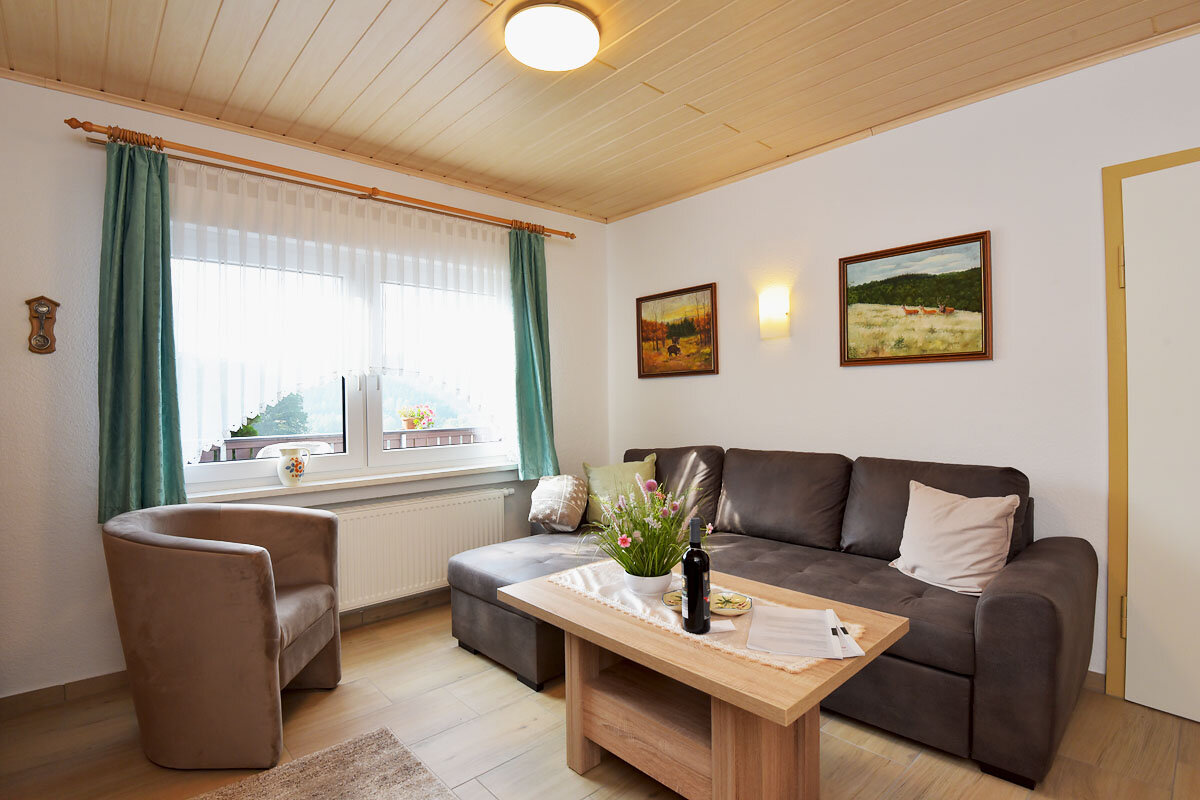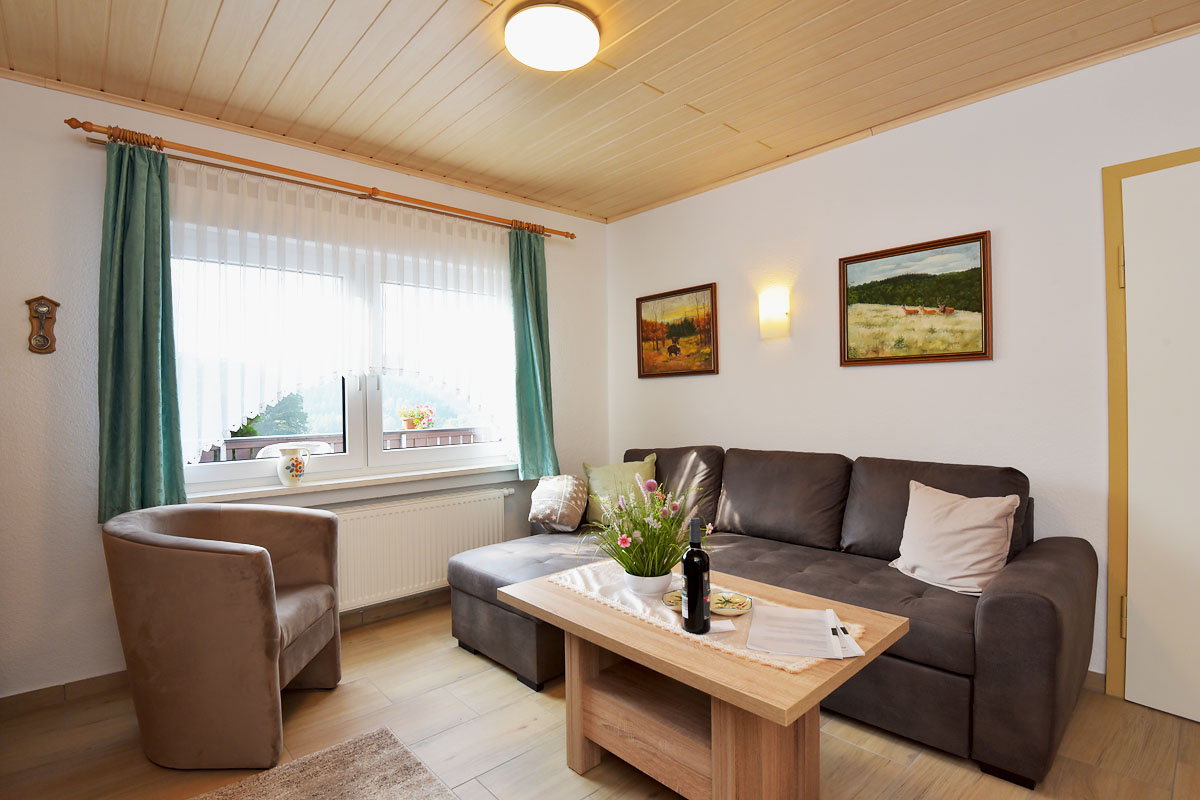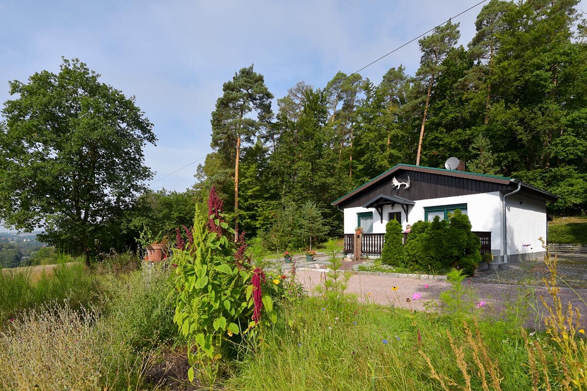 Unser Ferienhaus ist ruhig am Waldrand gelegen und man hat einen wunderschönen Ausblick auf Teile des Thüringer Waldes.