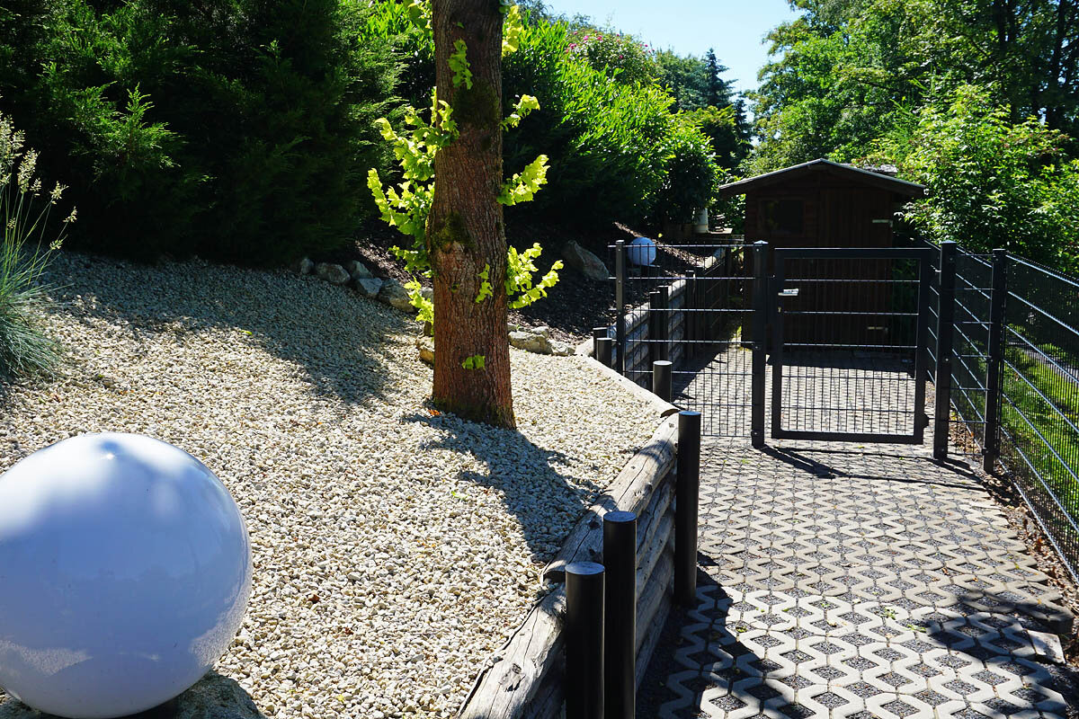 Das Grundstück (600 qm) ist für Haustiere mit viel Auslauf besonders geeignet.