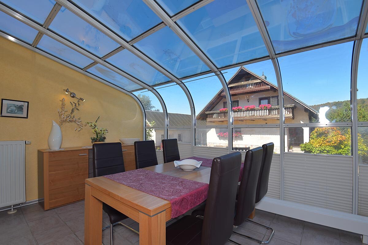 Unser Ferienhaus "Zur alten Limonadenfabrik", wo einst vom Vorbesitzer erfrischende Limonade produziert wurde, ist seit 2011 ein Domizil für angenehme Erholung und zu jeder Jahreszeit eine Reise wert. Faszinierend ist der komplett verglaste Wintergarten mit großer Esstischgruppe.