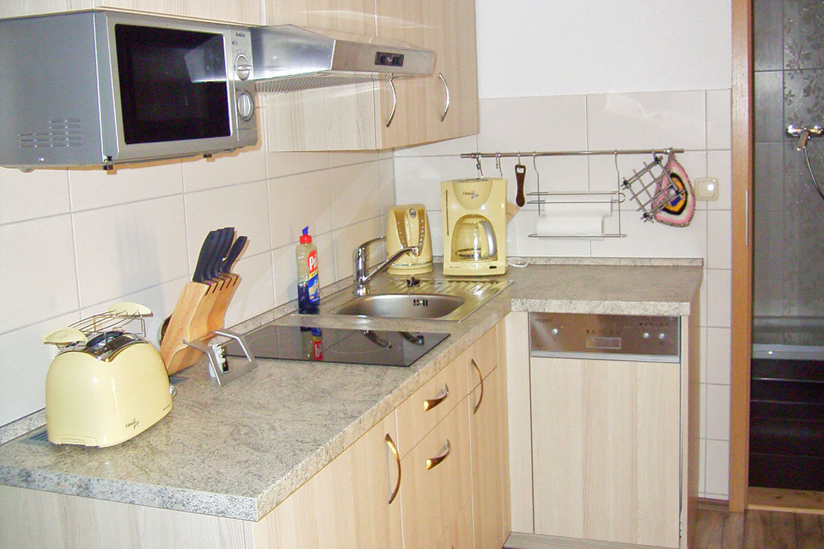 Jede Wohnung besteht aus einem Wohnraum mit einem Fernsehgerät, einem Doppelbettschlafzimmer, einer Küche und einem kleinem Bad mit Dusche und WC.
