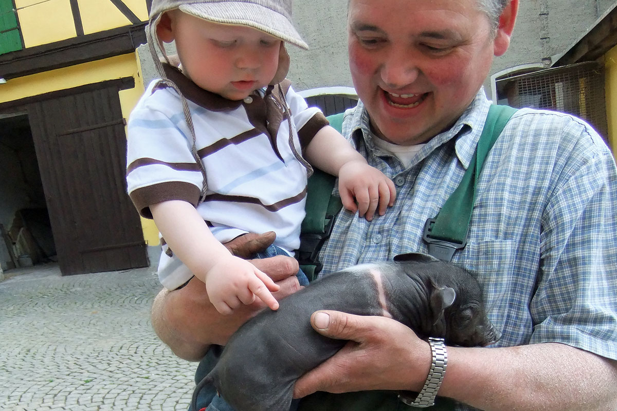 Selbstverständlich können Ihre Kinder auch unsere Tiere auf dem Hof kennenlernen und gern bei den Arbeiten zuschauen.