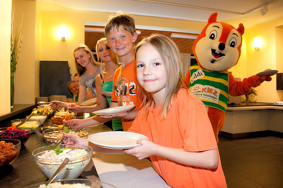 Ein moderner Küchentrakt mit Speisesaal und kompetentes Küchenpersonal sorgen für das leibliche Wohl unserer Gäste mit leckeren Speisen. Hier kocht der Küchenchef noch selber. Ein Cafe und ein Kiosk stehen für Extras zur Verfügung.