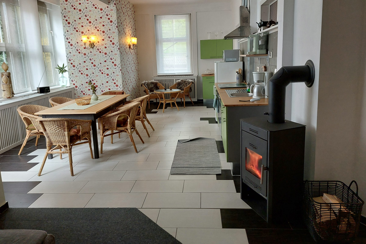 Die ehemalige Kirche wurde im Jahre 2007 vom Bistum Erfurt in liebevolle Hände abgegeben und seit dem von Familie Göckel, in Eigenarbeit saniert und renoviert. Die geschmackvolle Einrichtung ist schlicht und natürlich, um an die Vergangenheit des Hauses anzuknüpfen.
