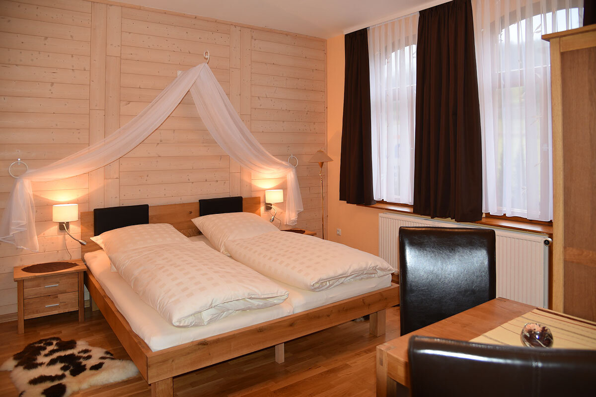 Durch den repräsentativen Eingangsbereich gelangt man in die 4 liebevoll eingerichteten Gästezimmer, jedes mit individuellem Ambiente versehen.