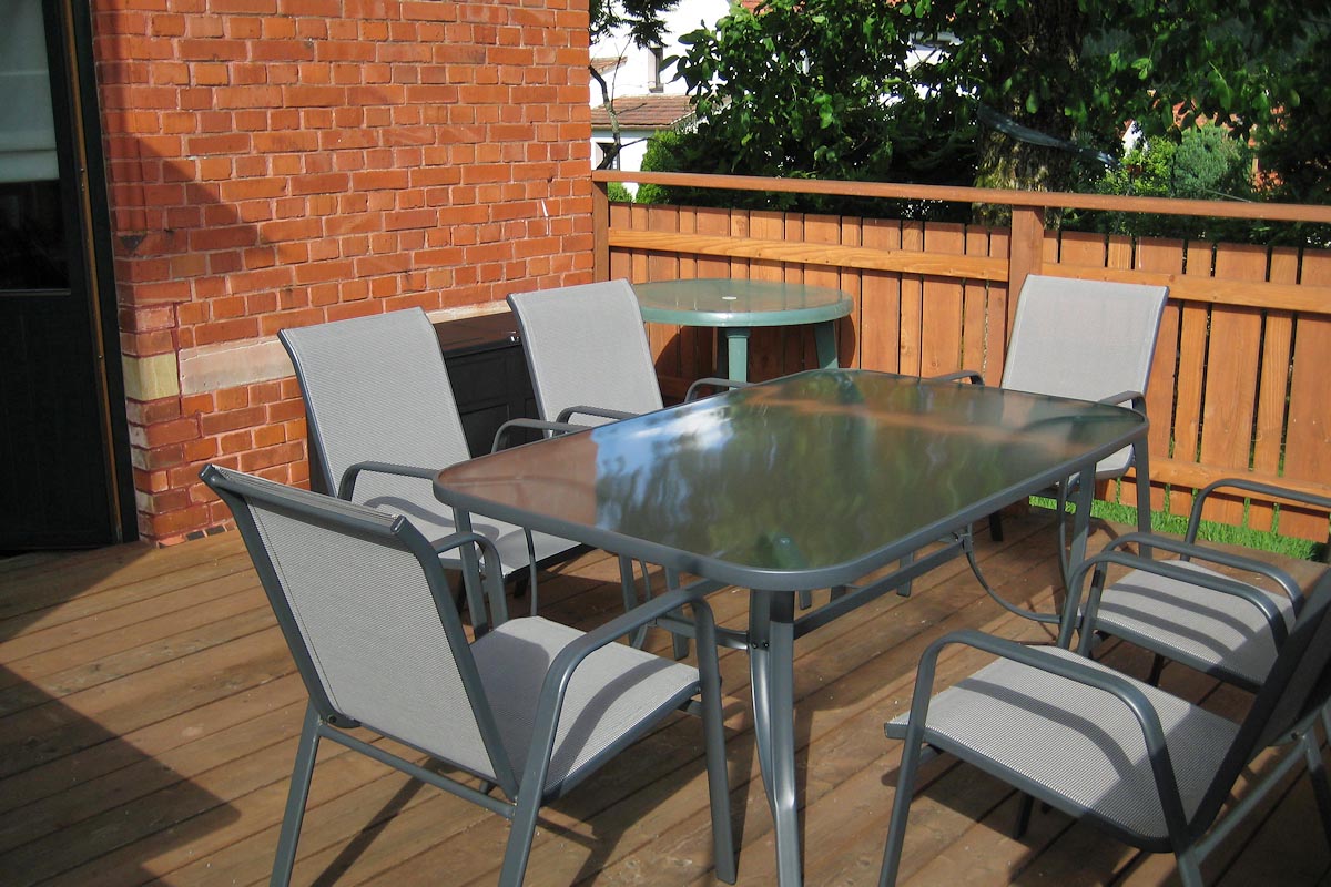 Von hier aus gibt es einen direkten Zugang zur großen Terrasse oberhalb des weitläufigen Gartengrundstückes, welches im Sommer als Liegewiese, aber auch für sportliche Aktivitäten einlädt.