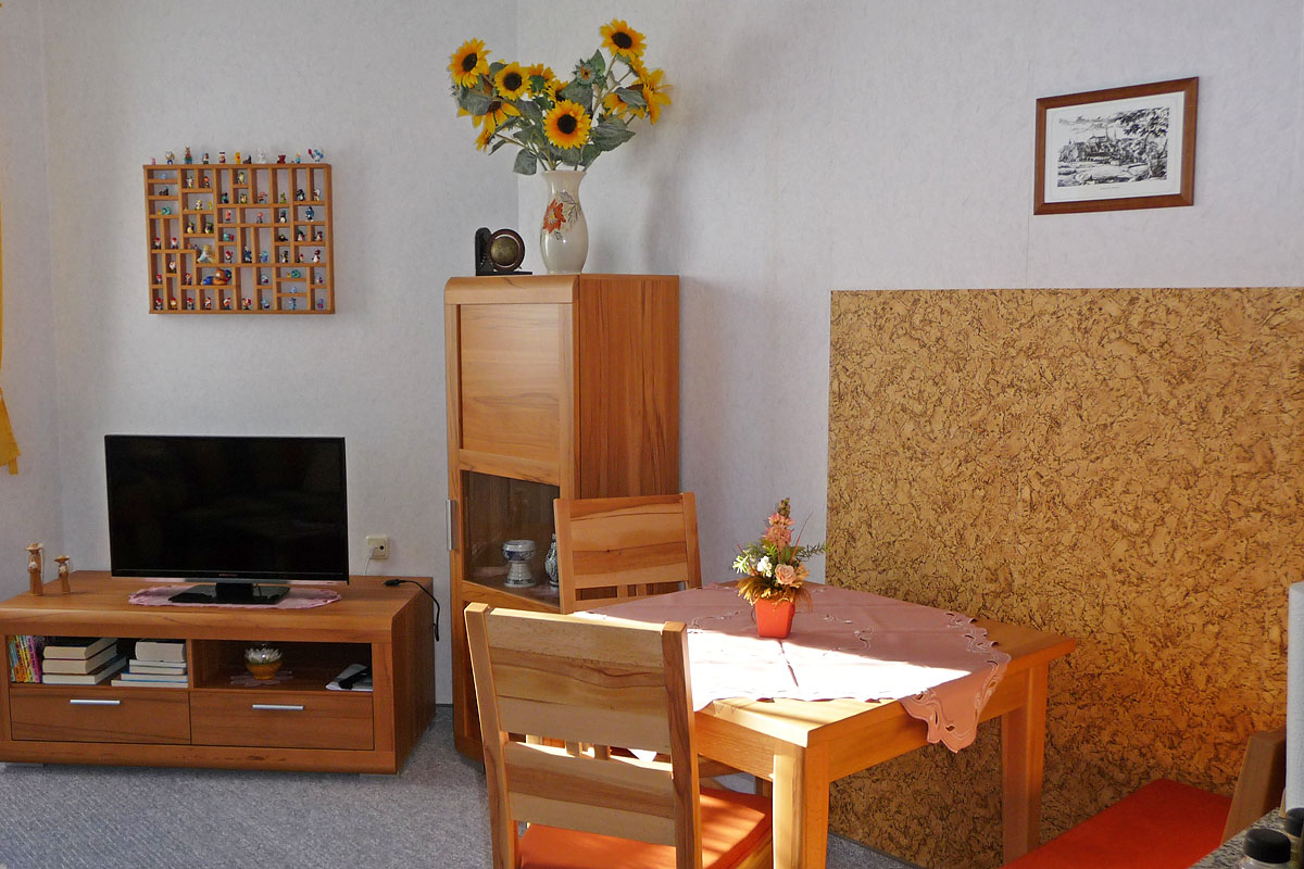 Ihre sehr gepflegte Nichtraucher-Ferienwohnung befindet sich am Ortsrand, in einer sehr ruhigen Siedlung, im Erdgeschoß des Hauses Ihrer Vermieter. Sie ist optimal für 2 Personen (1 Aufbettung für Kinder ist im Wohnbereich nach Absprache möglich).