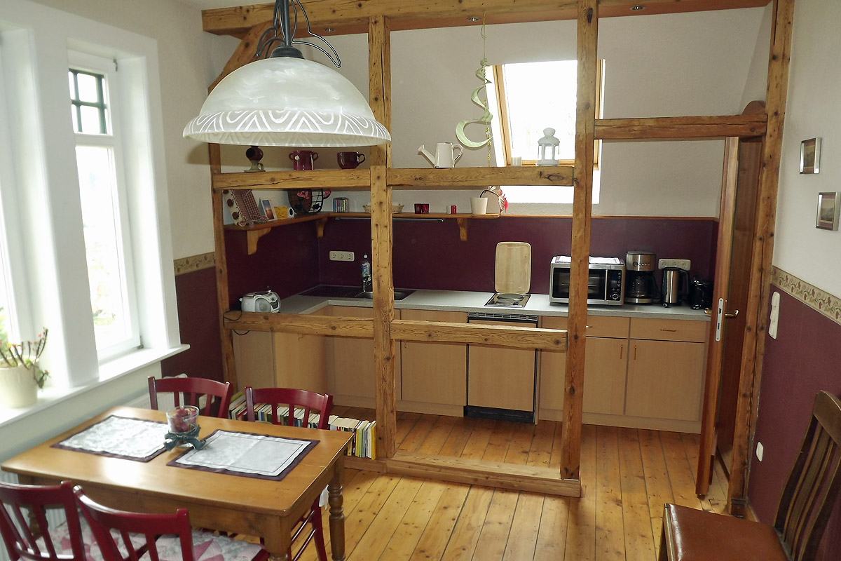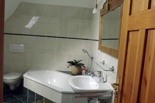 Von Ihrer Ferienwohnung haben Sie einen herrlichen Blick über die Stadt Schmalkalden sowie bis zur Rhön. Über einen separaten Eingang erreichen Sie die Wohnung in der ersten Etage. Sie ist mit viel Liebe zum Detail eingerichtet und verfügt über eine kleine Diele, ein Wohnraum mit Essecke und Küchenzeile, ein Badezimmer, ein Schlafraum mit Doppelbett sowie eine "Zwergenetage" mit zwei Schlafmatratzen.