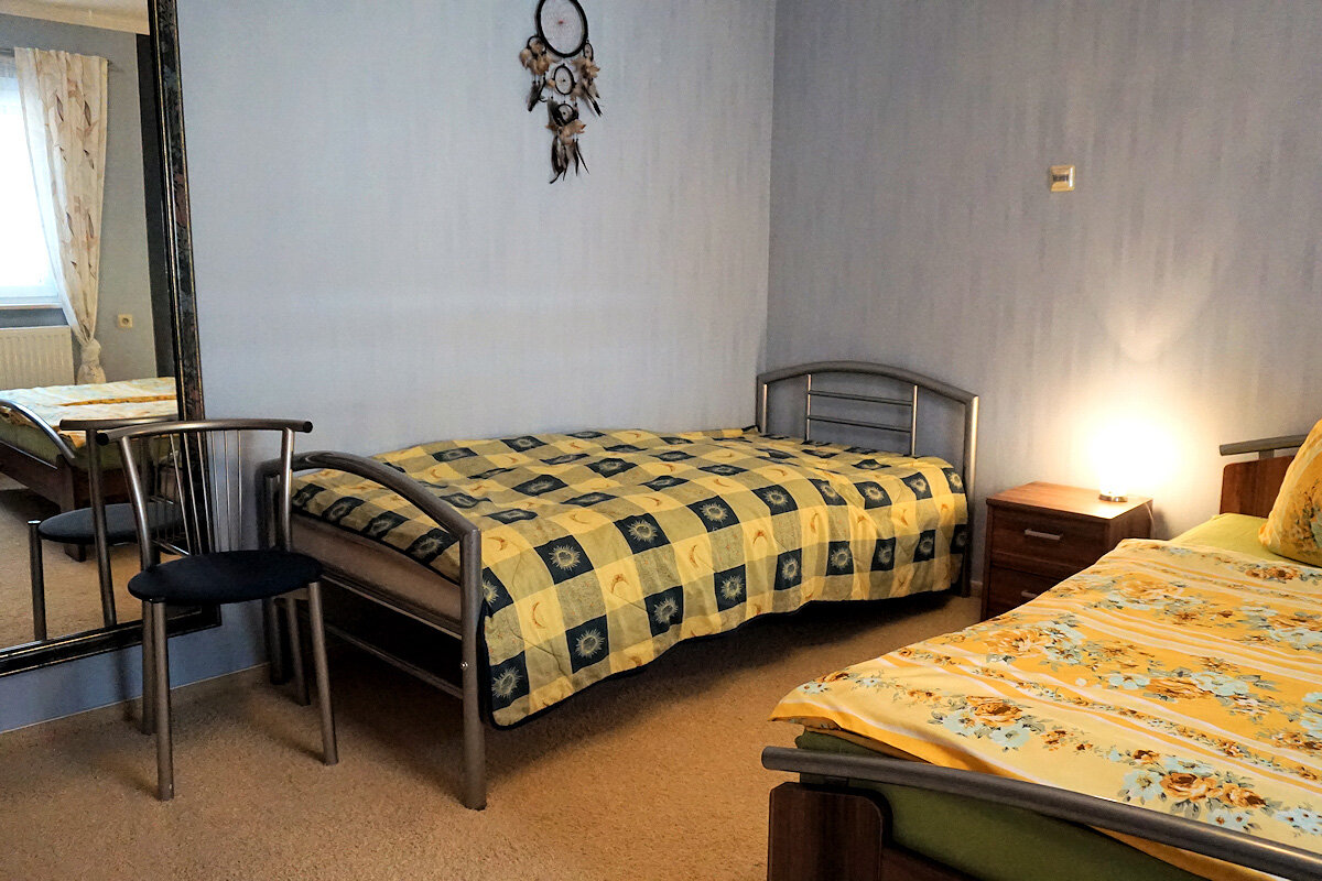 Unsere Nichtraucher-Ferienwohnung (49 qm, separater Eingang) für 2 bis 3 Personen befindet sich im Erdgeschoss unseres Zweifamilienhauses.