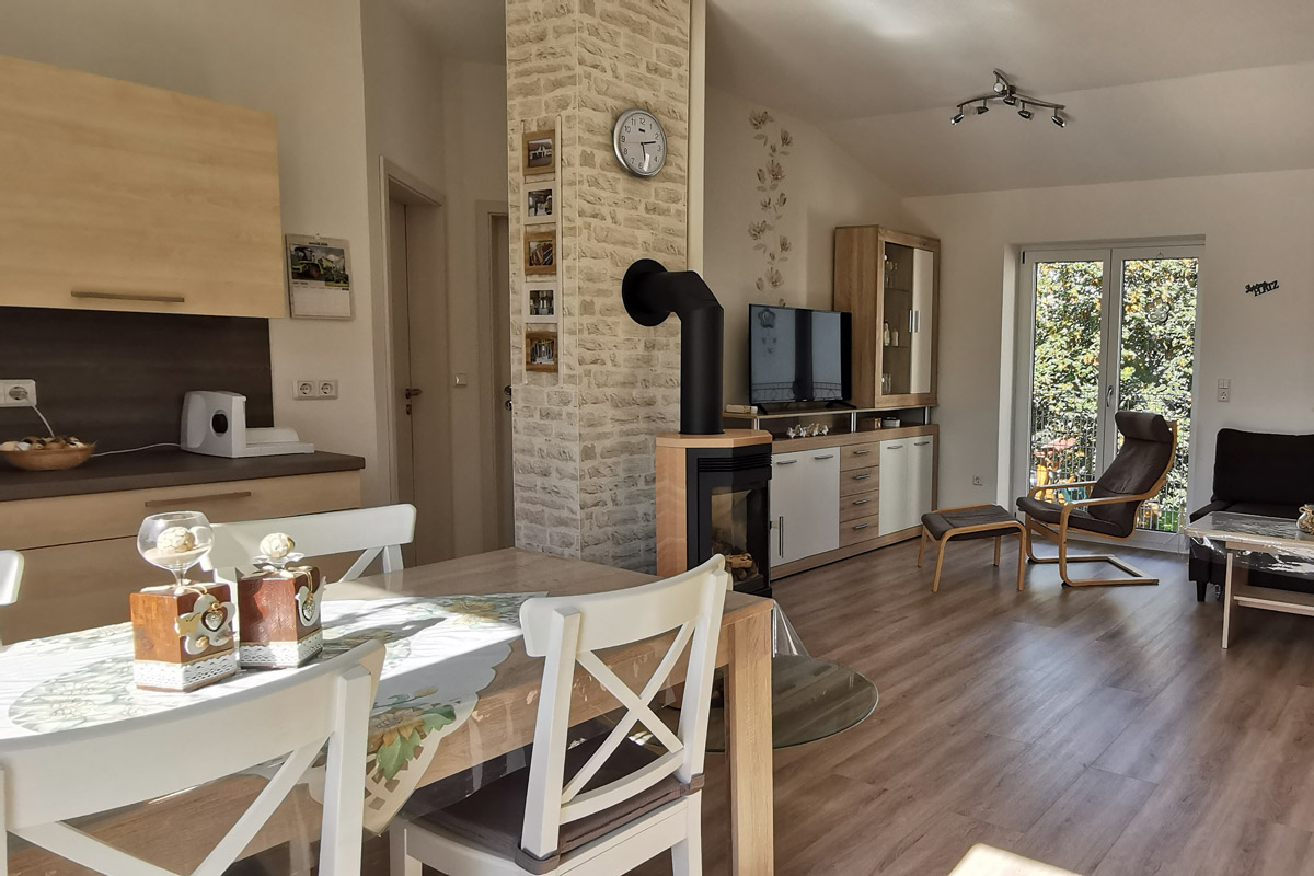 Unsere im Jahr 2024 neu eingerichtete Nichtraucher-Ferienwohnung für bis zu 6 Personen befindet sich in ruhiger Ortslage von Borsch (Ortsrand, kein Verkehr), nahe dem Rhönstädtchen Geisa. Borsch liegt direkt am Ulstertal-Radweg.