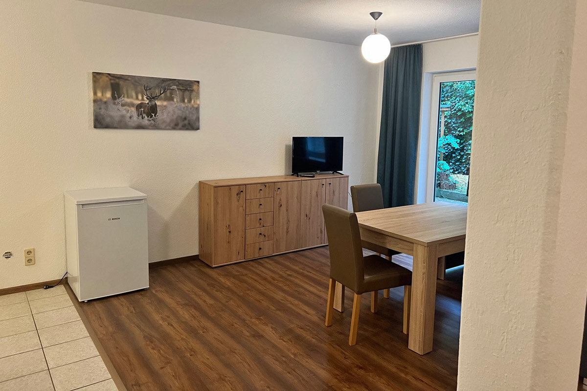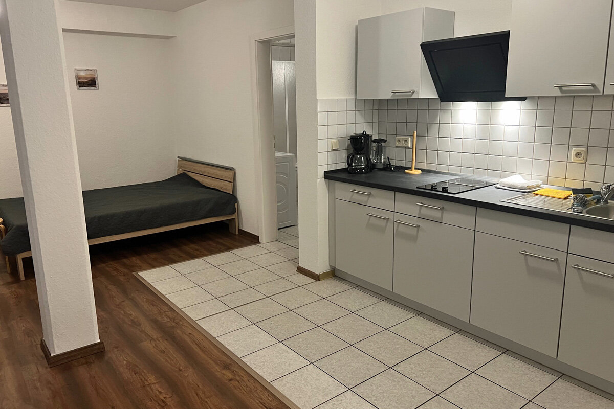 Unsere im Jahr 2022 fertiggestellte Ferienwohnung befindet sich im Souterrain mit Zugang zum Garten und Außensitzbereich und eignet sich für Pärchen, Monteure, Azubis, Geschäftsreisende oder kleine Familien.