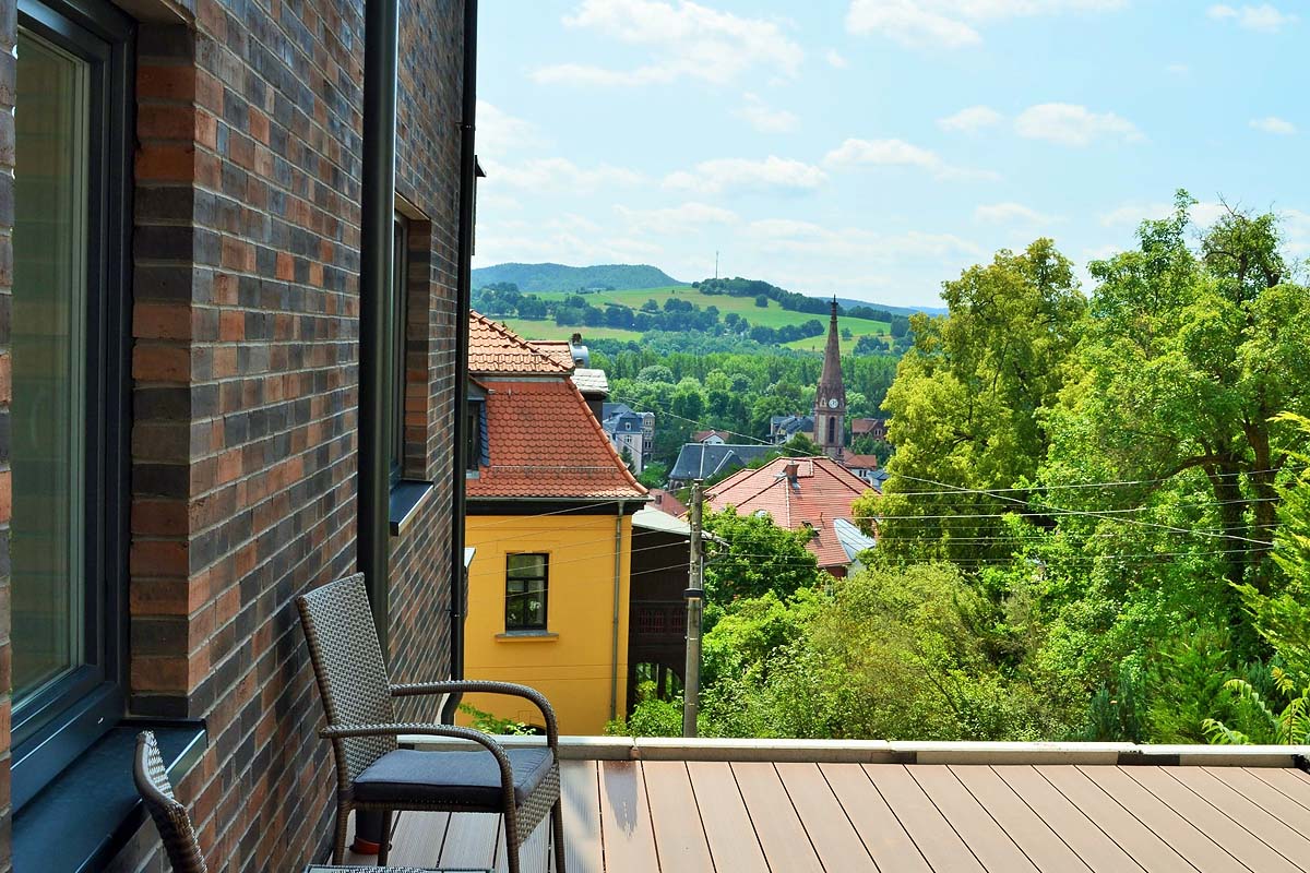 Beide Bereiche verfügen jeweils über eine große Terrasse mit einem herrlichen Blick über Rudolstadt.